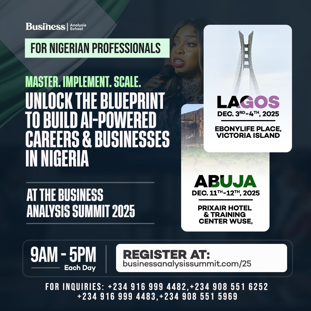 After transforming minds and shaping strategies in Atlanta, Calgary, and Accra. The Business Analysis Summit 2025 concludes its global tour in Lagos, Nigeria, with the most powerful and action-focused event of the series.